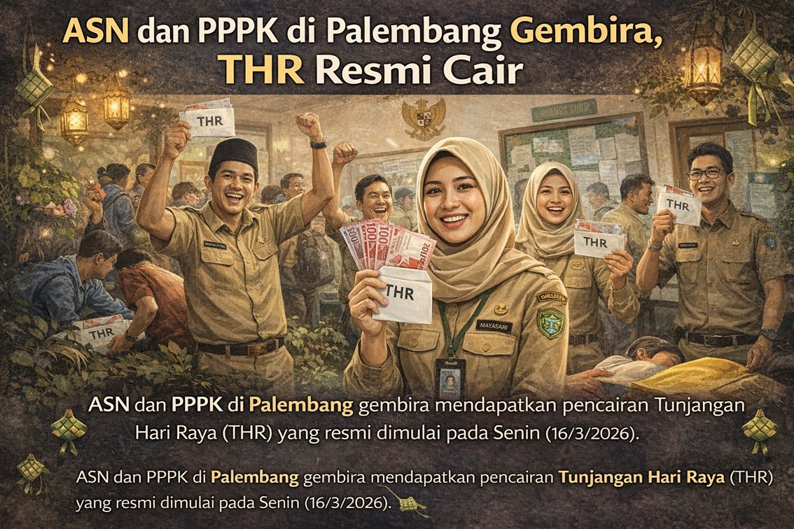 Palembang | Pemerintah Kota Palembang mulai mencairkan Tunjangan Hari Raya (THR) bagi Aparatur Sipil Negara (ASN) dan Pegawai Pemerintah dengan Perjanjian Kerja (PPPK) pada Senin (16/3/2026). Kebijakan ini disambut antusias oleh para pegawai di lingkungan pemerintah kota, termasuk tenaga pendidik yang menilai pencairan THR sangat membantu dalam memenuhi berbagai kebutuhan menjelang Hari Raya Idul Fitri.