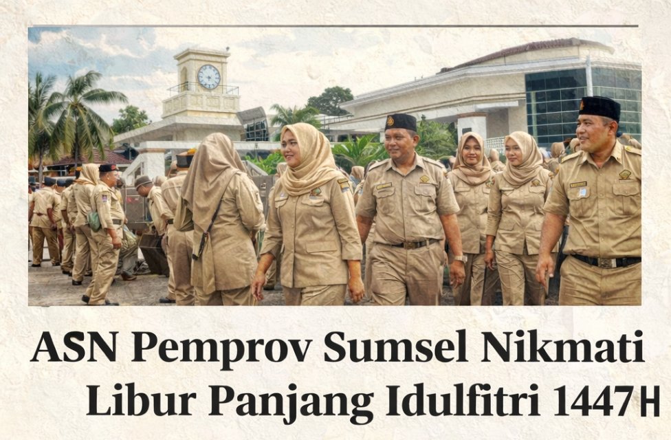Palembang | Pemerintah Provinsi Sumatera Selatan menetapkan jadwal libur dan cuti bersama bagi Aparatur Sipil Negara (ASN) menjelang Hari Raya Idulfitri 1447 Hijriah. Kebijakan tersebut memberikan kesempatan bagi para pegawai untuk menikmati libur panjang selama tujuh hari. Meski demikian, pemerintah daerah menegaskan bahwa pelayanan kepada masyarakat tetap harus berjalan normal selama periode libur tersebut.