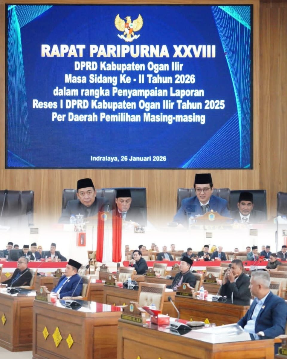 Interaksimassa.com – Ogan Ilir | Dewan Perwakilan Rakyat Daerah (DPRD) Kabupaten Ogan Ilir menggelar Rapat Paripurna ke-XXVIII dalam rangka Penyampaian Laporan Reses I Anggota DPRD Kabupaten Ogan Ilir per Daerah Pemilihan (Dapil), Senin (26/1/2026).