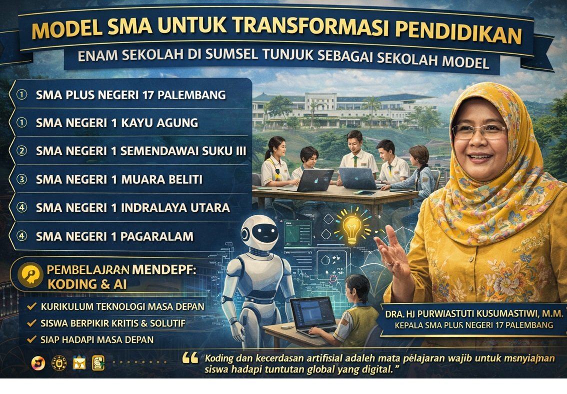Palembang | Transformasi pendidikan menengah di Sumatera Selatan memasuki fase baru yang lebih progresif dan adaptif terhadap perkembangan zaman. Pemerintah pusat resmi menunjuk enam sekolah menengah atas (SMA) negeri sebagai sekolah model, yang akan menjadi pionir dalam penerapan pendekatan pembelajaran mendalam atau deep learning, sekaligus mengintegrasikan keterampilan masa depan seperti koding dan kecerdasan artifisial (AI) dalam kurikulum.