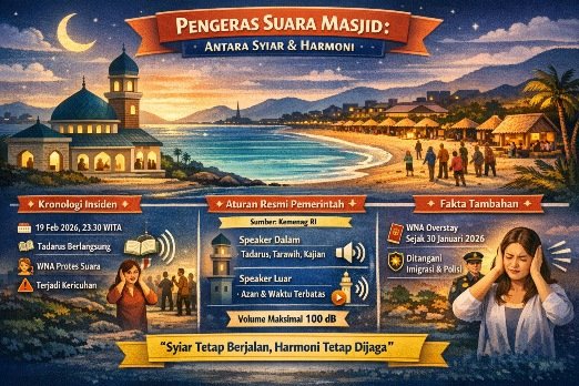 JAKARTA – Peristiwa di Gili Trawangan, Lombok Utara, Nusa Tenggara Barat, pada malam pertama Ramadan 1447 H Kamis (19/2/2026) itu bukan sekadar riuh sesaat. Ia membuka percakapan yang lebih luas tentang bagaimana suara ibadah, ruang publik, dan keberagaman saling bertemu, bahkan terkadang beririsan.