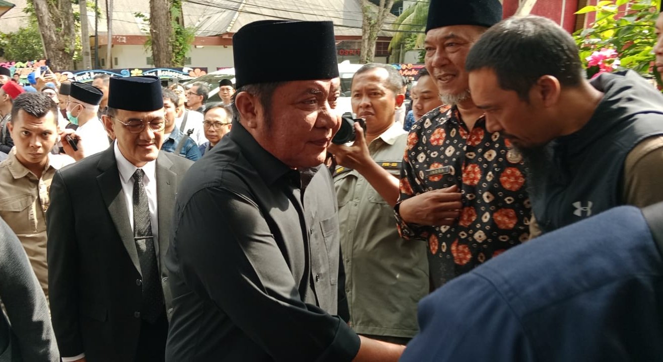 Kedatangan Herman Deru disambut hangat oleh keluarga besar almarhum serta para pelayat yang sejak pagi telah memadati halaman rumah duka. Mengenakan pakaian serba hitam lengkap dengan peci, ia tampak menyalami satu per satu anggota keluarga dengan penuh empati dan ketulusan.