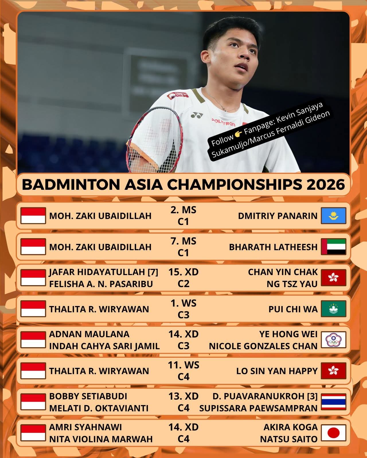 Sementara itu, dari sektor ganda campuran, pasangan Jafar Hidayatullah / Felisha A. N. Pasaribu akan menghadapi duet kuat asal Hong Kong, Chan Yin Chak / Ng Tsz Yau.