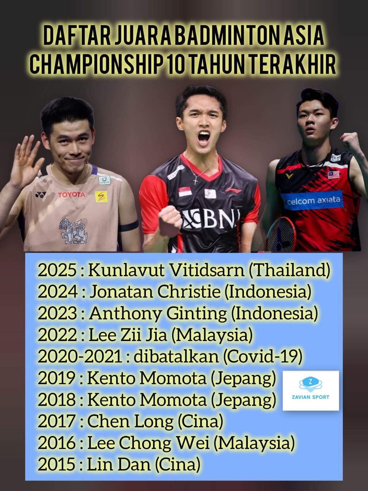 Tahun 2016 pemain kidal dari Negeri tetangga (Malaysia) Lee Chong Wei sukses meraih gelar juara Asia ini.