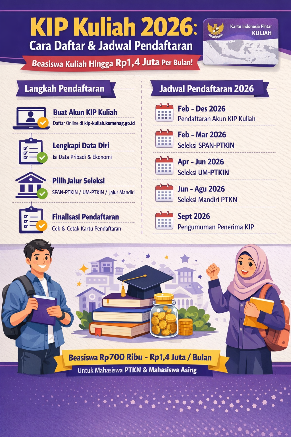 – Pendaftaran akun KIP Kuliah: Februari – Desember 2026