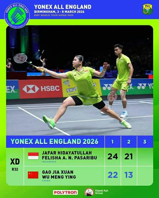 Kita berharap, semoga atlit-atlit badminton Indonesia lainnya di semua sektor bisa memberikan terbaik untuk Negeri dan bangsa Indonesia tercinta kita ini di ajang kompetisi badminton Internasional level kejuaraan All England di Birmingham Inggris tahun 2026 ini, Amiin.