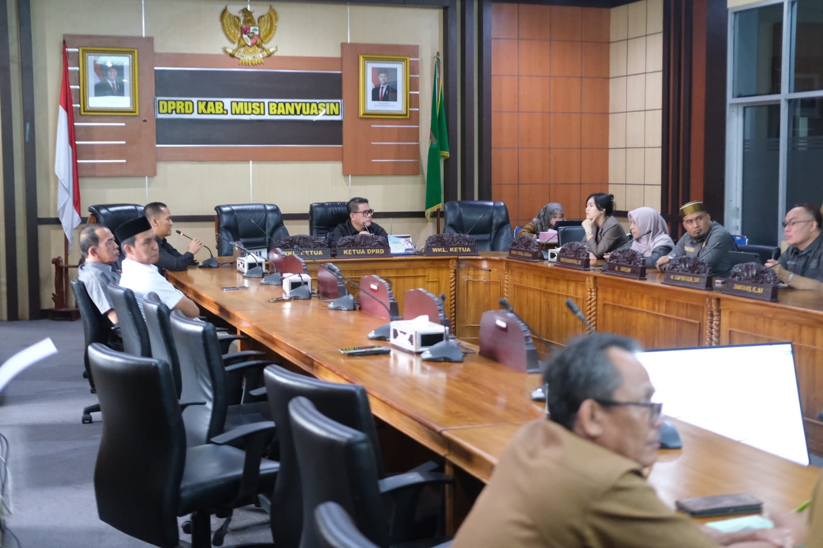 Rapat ini dipimpin oleh Wakil Ketua DPRD Muba H. Ahmadi, S.E., serta dihadiri Asisten Bidang Administrasi Umum Setda Muba Drs. H. R.E. Aidil Fitri, anggota Badan Musyawarah DPRD Muba, dan perangkat daerah terkait di lingkungan Pemerintah Kabupaten Musi Banyuasin.