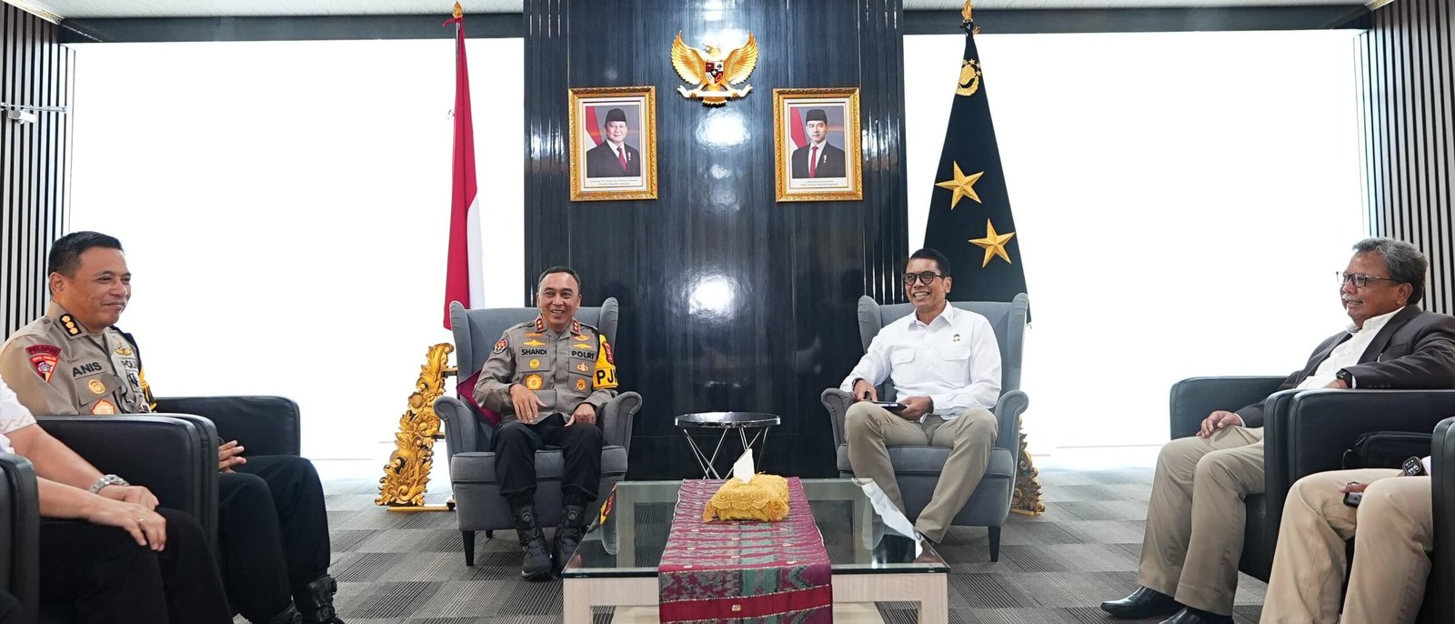 Kapolda Sumsel, Sandi Nugroho, menerima langsung kunjungan delegasi yang dipimpin Staf Khusus Menteri ESDM Bidang Percepatan Penyelesaian Permasalahan Hukum, Rudy Sufahriadi, bersama Ketua Satgas Lifting, Nanang Abdul Manaf. Sejumlah Pejabat Utama Polda Sumsel turut mendampingi dalam pertemuan tersebut.