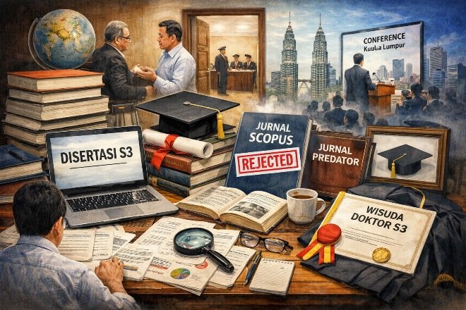 Salah satu ujian terberat menempuh program doktoral adalah mengerjakan disertasi. Dibutuhkan strategi yang tepat untuk merampungkannya. Karena disertasi tidak sekedar mengerjakan tetapi membutuhkan kedalaman teoritis dan paradigmatis. Dengan level tertinggi akademis penyelesaian disertasi tidak bisa dilakukan asal-asalan atau membayar ghost writer. Sebab substansi disertasi mencerminkan isi otak dan pikiran pembuatnya.