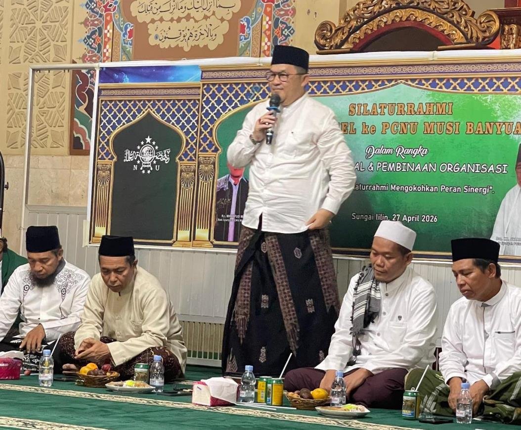 MUBA – Pengurus Cabang Nahdlatul Ulama (PCNU) Kabupaten Musi Banyuasin menggelar halal bihalal sekaligus konsolidasi Pembinaan oleh Pengurus Wilayah Nahdlatul Ulama (PWNU) Provinsi Sumatera Selatan bertempat di Masjid Agung Darussalam Kecamatan Sungai Lilin Kabupaten Musi Banyuasin kemarin, Selasa (28/4/2026).