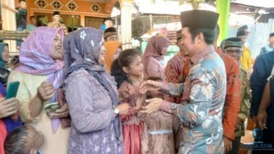 Saat memenuhi undangan tasyakuran aqiqah Kauzar Yassir Arshaka putra, dari pasangan Bapak Chandra dan Ibu Henny di Desa Pagar Negara Kecamatan Lahat, Yulius Maulana dicegat emak-emak Pagar Negara untuk berfoto bersama, Sabtu (22/06/2024).