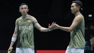 Fajar Alfian/Muhammad Rian Ardianto harus mengakui ketangguhan pasangan muda China, He Ji Ting/Ren Xiang Yu, di final Singapore Open 2024.