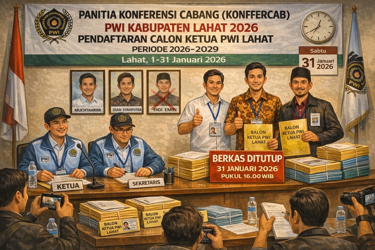 Lahat | Panitia Konferensi Cabang (Konfercab) Persatuan Wartawan Indonesia (PWI) Kabupaten Lahat secara resmi menutup tahapan penerimaan dan pengembalian berkas pencalonan Ketua PWI Lahat periode 2026–2029.
